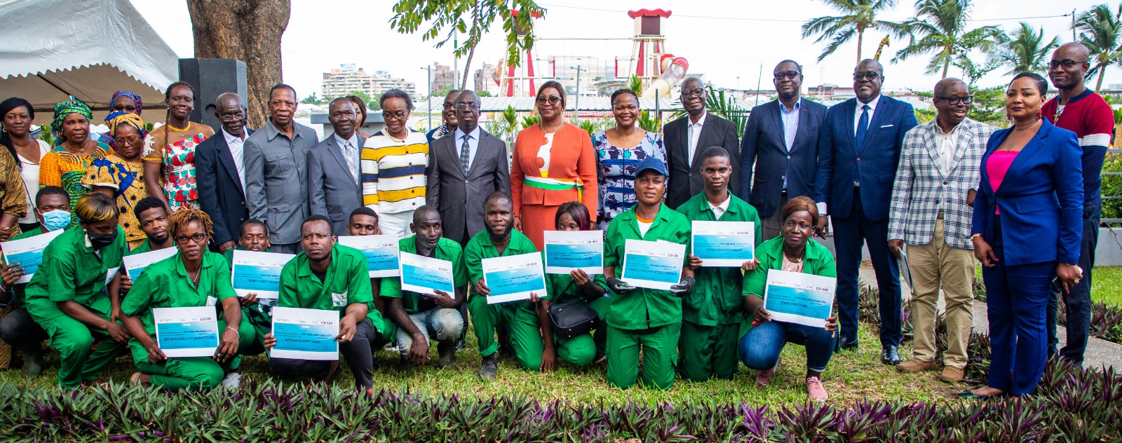 La Direction du Développement Local et de la Promotion de l’écocitoyenneté (DDL-PEC) de la mairie de la Commune du Plateau, a abrité le mardi 23 avril 2023, la cérémonie de remise de chèques relatifs au financement complémentaire du projet des Travaux à Haute Intensité de Main-d’œuvre (THIMO), un programme porté par l’Agence Emploi Jeunes et la Plate-Forme de Services (PFS) Côte d’Ivoire. Ce sont 26 jeunes bénéficiaires qui ont reçu un montant de 120.000 francs CFA chacun pour un total de 3.120.000 FCFA. Ce projet a consisté à prélever sur les salaires de ces jeunes enrôlés dans la brigade de salubrité de la Commune du Plateau, une certaine somme d’argent, sur une période de six mois, qui leur a par la suite été reversée sous forme d’épargne.