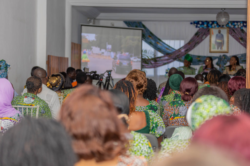 Après l’introduction de Madame Reine Matilde Konan, Présidente du comité d’organisation de la cérémonie, qui a situé le cadre de la rencontre, ce fut au tour de Madame Félicité Kramo, Directrice exécutive du centre Akwaba Mousso de prendre la parole. Elle a gratifié l’assistance d’une communication appuyée de projection de témoignages vidéo, pour présenter les activités de sa structure qui écoute, suit, encadre et recueille les femmes victimes de violences conjugales. Elle a dénoncé avec vigueur les multiples conséquences de ces violences – physiques, psychologiques, économiques – non seulement sur les victimes, mais aussi sur leurs enfants. Madame Kramo a regretté le faible nombre de structures d’écoute et de suivi en Côte d’Ivoire, tout en pointant du doigt la stigmatisation souvent subie par les victimes au sein même de leur entourage. En conclusion, elle a lancé un appel clair aux femmes présentes : ne pas hésiter à dénoncer tout acte de violence et à solliciter un encadrement adapté. Elle a tenu à préciser que les services du centre Akwaba Mousso sont entièrement gratuits pour les victimes.